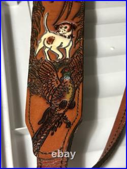 Vintage Embossed Weave White Stitched Design Brown Leather Rifle Sling Suede Backed with QD Swivels. The exact item(s) pictured is the item(s) you will receive. Please review all pics they are part of the description.